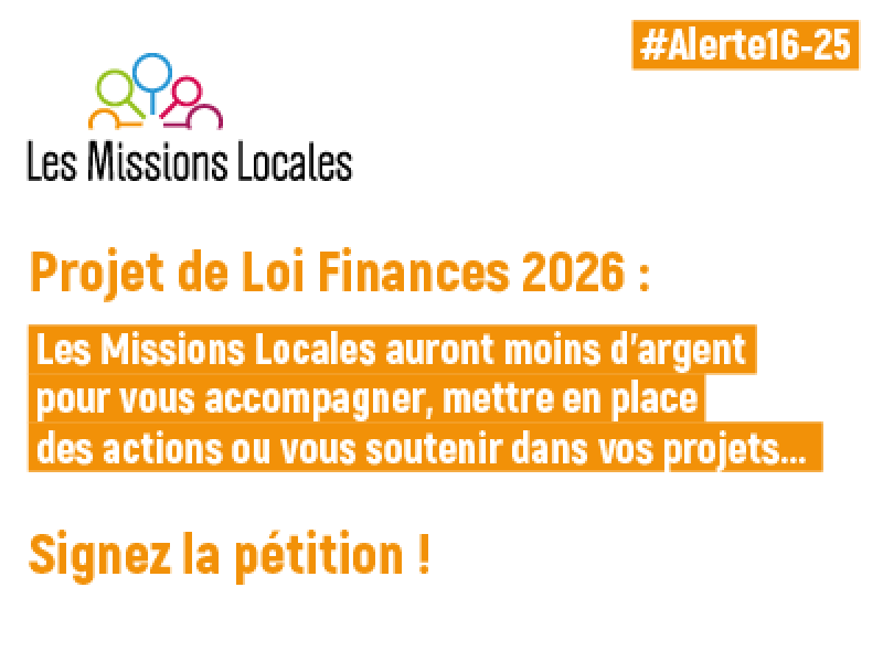 La Mission Locale/Le réseau des Missions Locales est en première ligne face aux difficultés que rencontrent leur habitants, nous nous mobilisons pour défendre un modèle unique, décentralisé et efficade d'insertion professionnelle et sociales des jeunes. Nous appelons le Gouvernement et les parlementaires à réévaluer les moyens accordés aux Missions Locales et à l'accompagnement des jeunes en 2026.